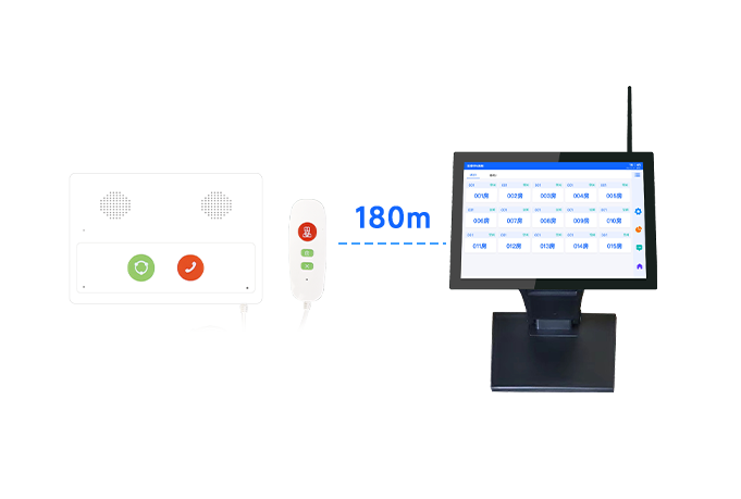支持一鍵呼叫,支持取消呼叫,低功耗、長續(xù)航、補(bǔ)充快,視距180米(發(fā)射與接受之間無障礙物),尺寸106*86*23mm,占用位置小,適用于各種場景。