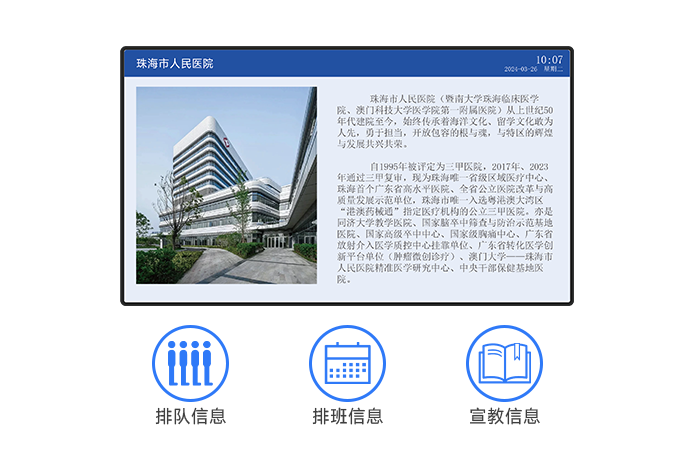 可用于顯示排隊信息、排班信息、健康宣教信息等